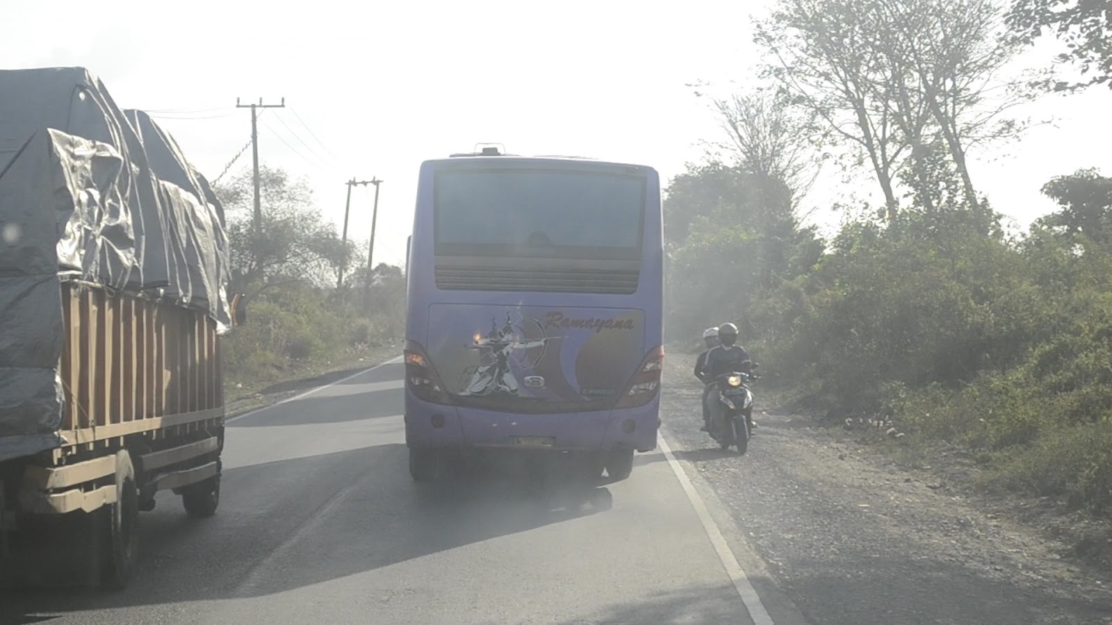 arah berlawanan banyak bis-bis khas sumatra berliweran seperti